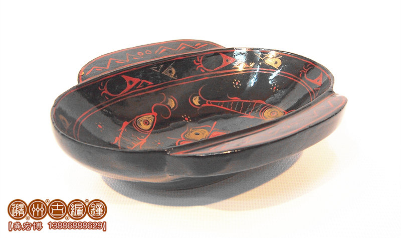 耳杯造型為器口元寶形,小耳,淺腹,平底,往往以盤承托。耳杯有方形和圓形兩種。自戰(zhàn)國(guó)以來(lái),一直經(jīng)久不衰。主要為飲酒器,還與古代“曲水流觴”的活動(dòng)有關(guān)。據(jù)考,古代習(xí)俗于三月初,為祓除不詳,在水之上游投入盛滿酒的耳杯,任其漂流而下,杯受阻則取而飲之。所以耳杯的耳大如羽扇,既利于漂浮,又便于提取。